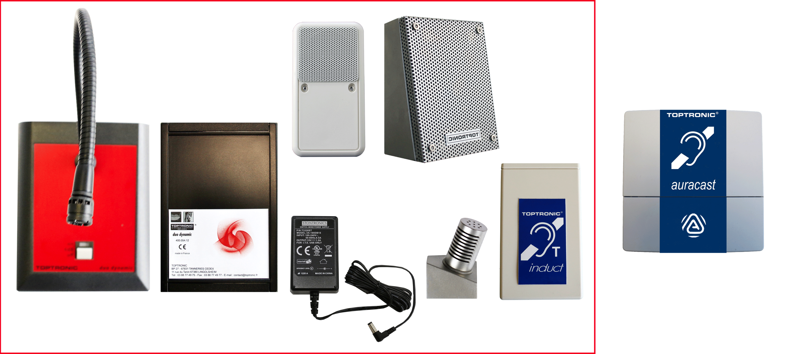Dialogue duplex intégral. Réglage PC de la sensibilité des micros, du volume des HP, du seuil de déclenchement, filtres larsen, boucle malentendant public/agent et micro-casque filaire/DECT